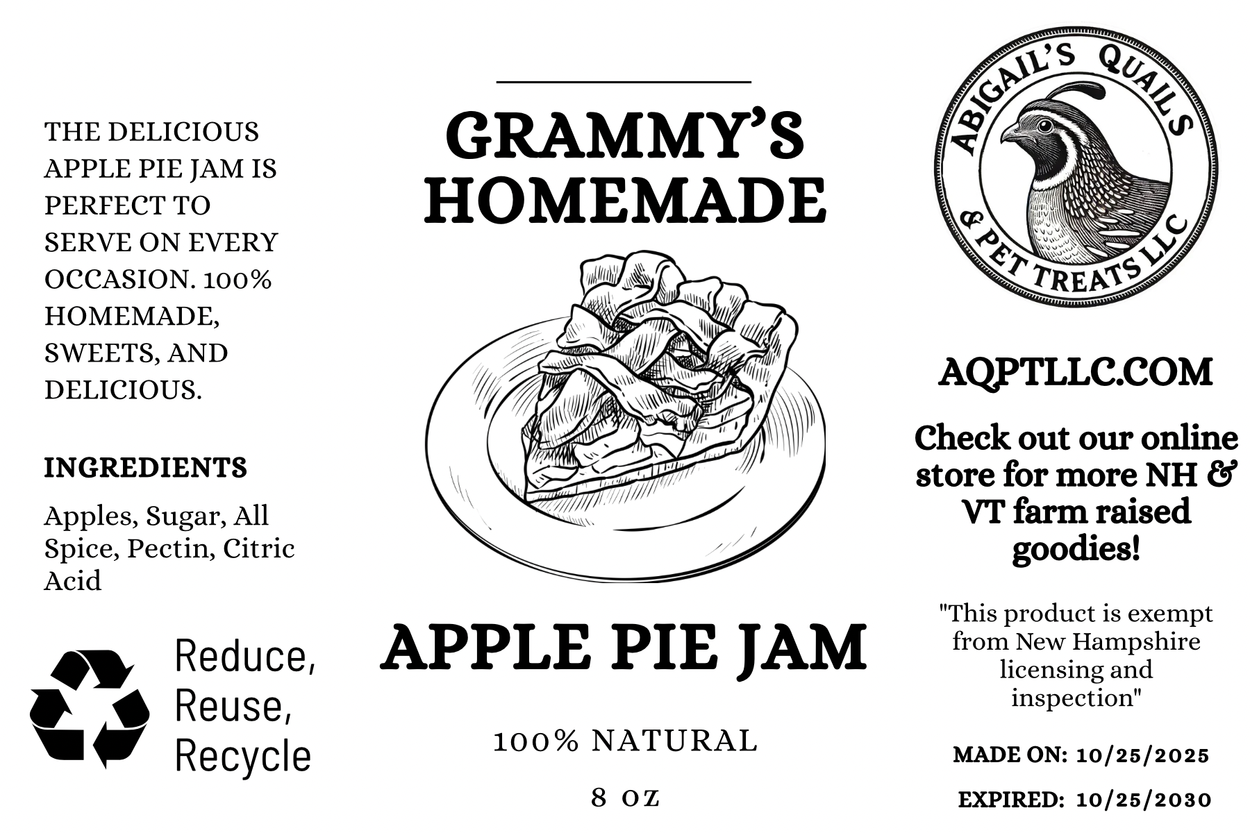 • Farm‑Fresh & Local: Made from apples picked from local New Hampshire orchards – straight from our trees to your jar.